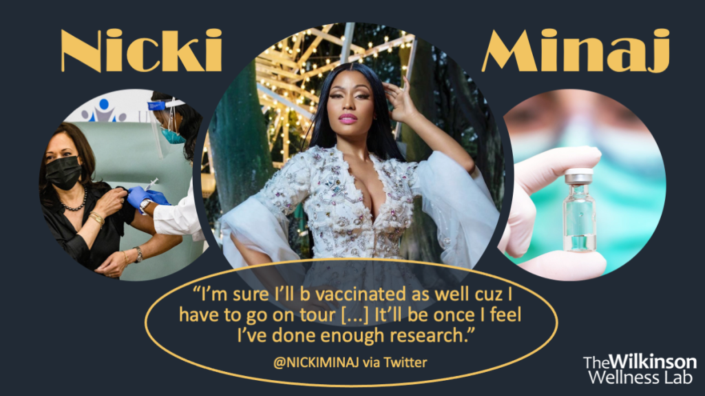 Bryan Pietsch, A. S. (2021, September 14). Nicki Minaj Tweets Coronavirus vaccine conspiracy theory, spotlighting struggle against misinformation. The Washington Post. Retrieved September 14, 2021, from https://www.washingtonpost.com/arts-entertainment/2021/09/14/nicki-minaj-covid-19-vaccine-conspiracy/.